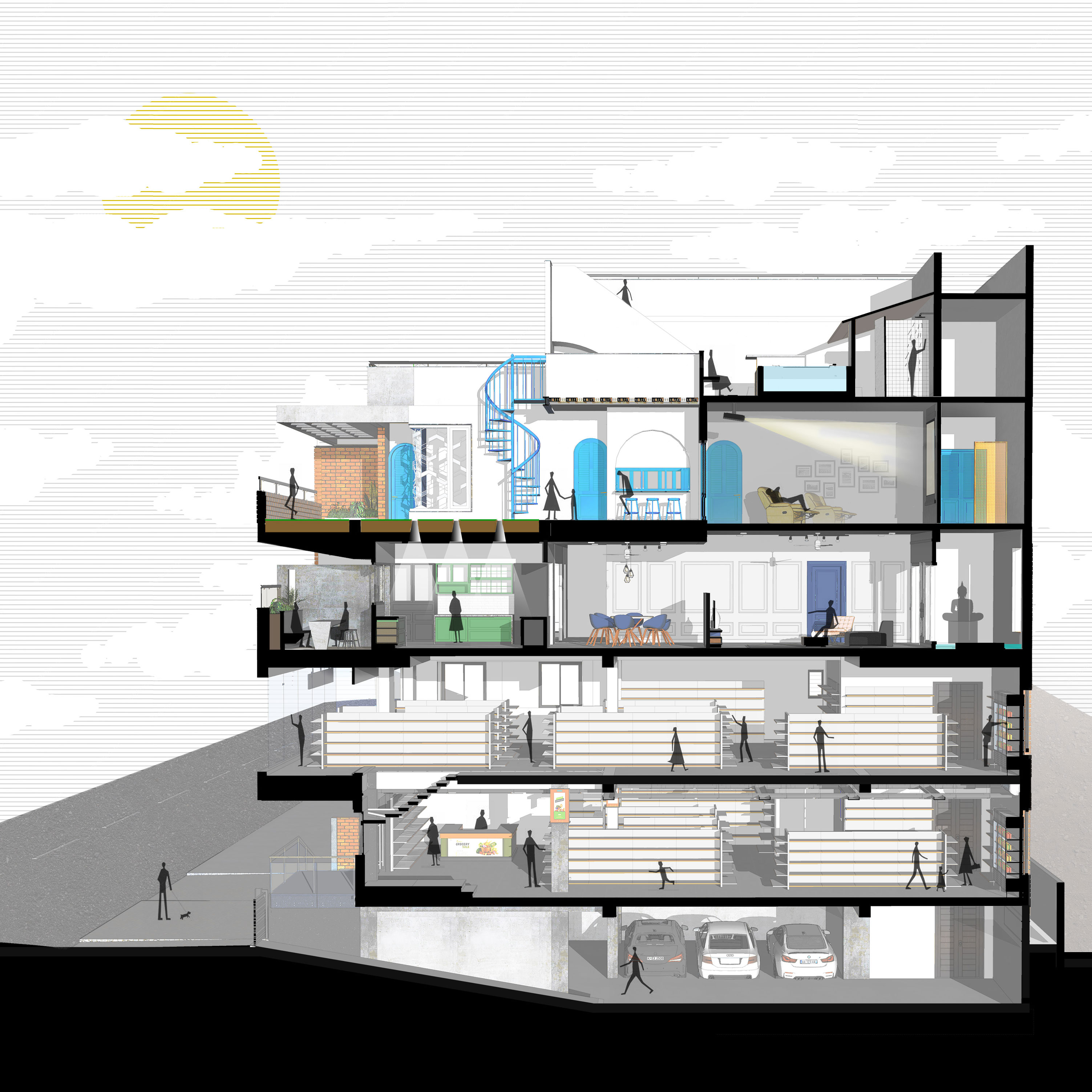 Located in one of the commercial hotspots of Bengaluru, AGA is a mixed use complex under construction. Being built on a plot of 285sqm, it consists of two levels of commercial space with a duplex residence above.