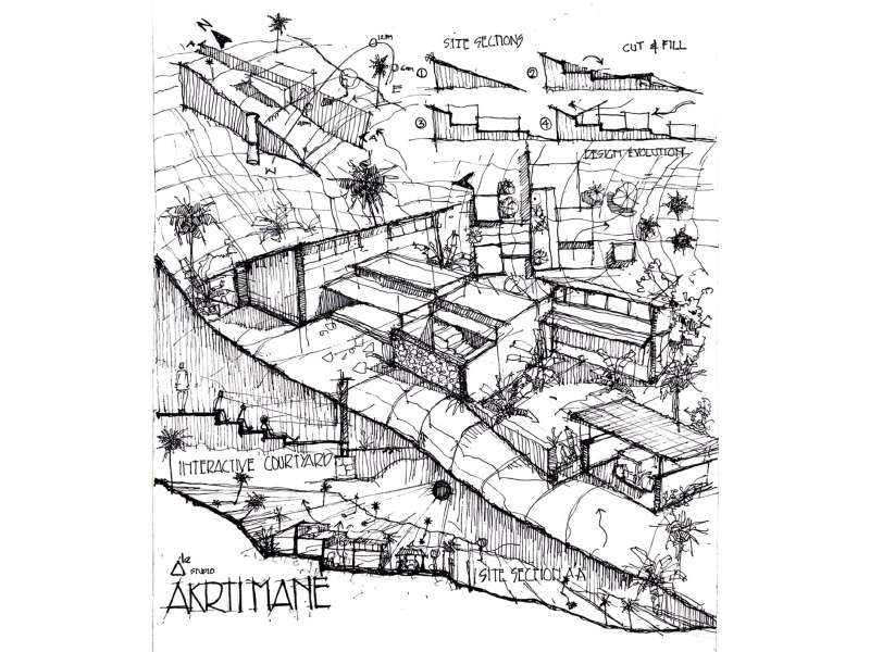 Take in the vibrancy of tropical life in this home nestled away in Kerala’s lush surroundings! This architectural design, which blends modern comforts with the beauty of nature, is situated on a contour site. Its exposed elements, which include laterite, cement, concrete, and stone, give it a rustic character that blends in with the surrounding environment. This home’s thoughtful incorporation of the site’s natural curves is what really makes it distinctive. Interior regions flow into one another with ease, connecting higher and lower places with a special play of levels.