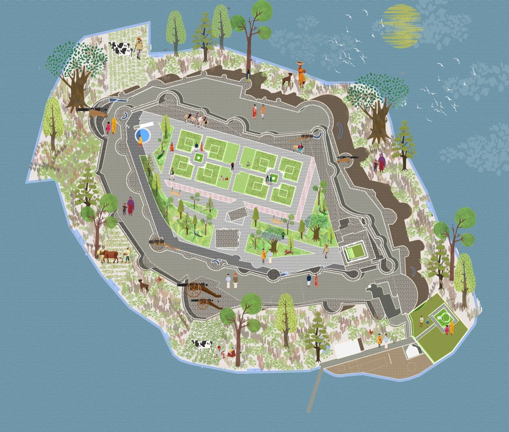 The drawing is a narrative of complex pasts and diverse futures that the fort had and will bring.