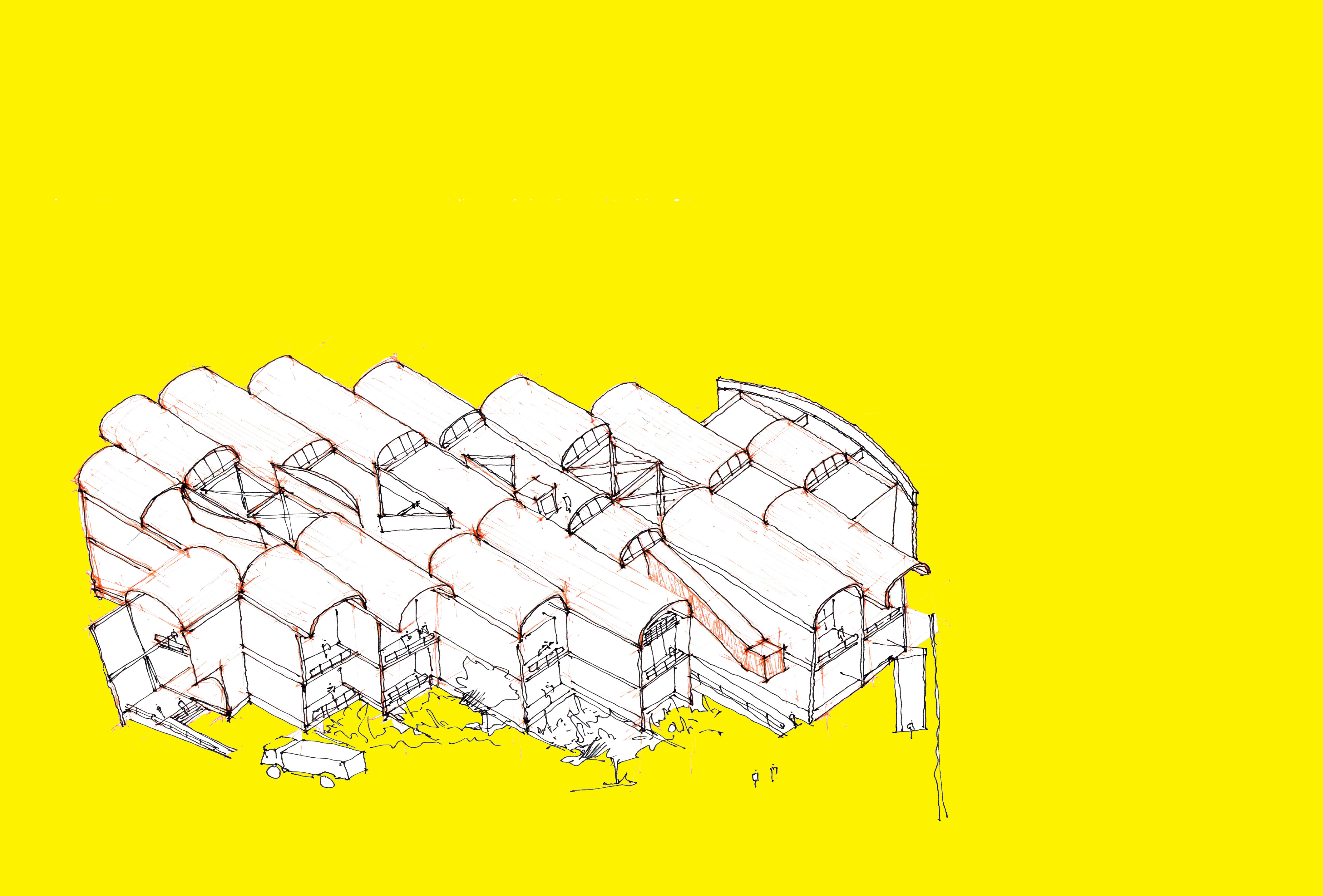 On the dense fabric of the industrial plotting system in Waghodia district, Vadodara where the site sets with the narrow road entrance, a known chemical company sets a requirement for a programme for the Ground plus One building on a rectangular site, an administrative section, and a laboratory with a storage facility. The programme is spread diagonally with the parallel wall concept on the rectangular site because of climatic concerns and voids are extracted in the mass where the requirement takes place. Insulated R.C.C. Segmental or Basket Handle Vault placed on the top as a roof.