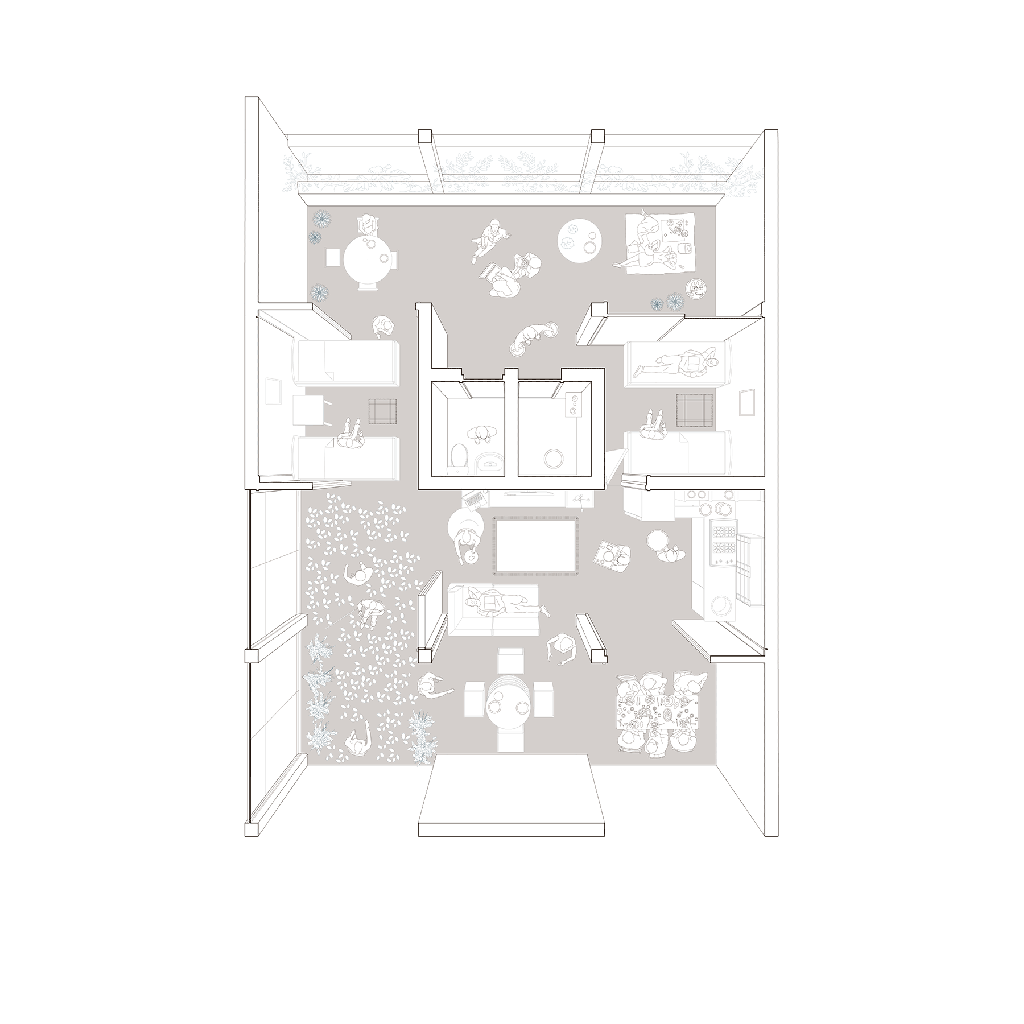 The illustration was created using various softwares including Archicad, Illustrator and Sketchup.