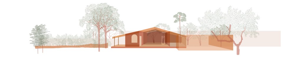 This illustration represents our studio, an adaptive reuse of an old farmer’s house transformed into our office. The translucent layering captures how nature has gradually taken over not just around, but also within the studio. It narrates a quiet conversation between the built and the grown, where the boundaries dissolve, and the architecture becomes part of the landscape. The drawing reflects our belief in coexistence and slow transformation over time.