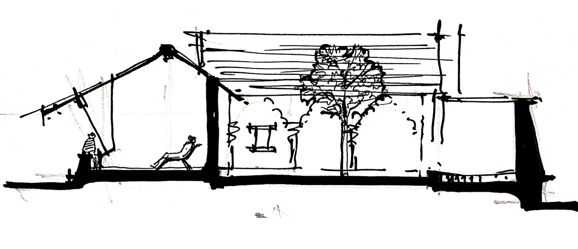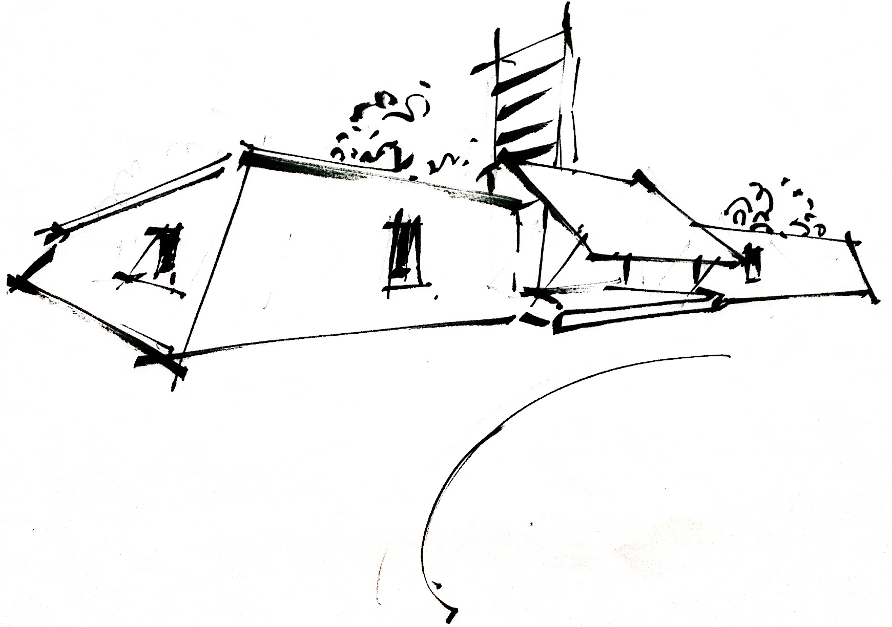 These pen and ink sketches reflect the ideation and conception of planning, form and detailing of the structure.