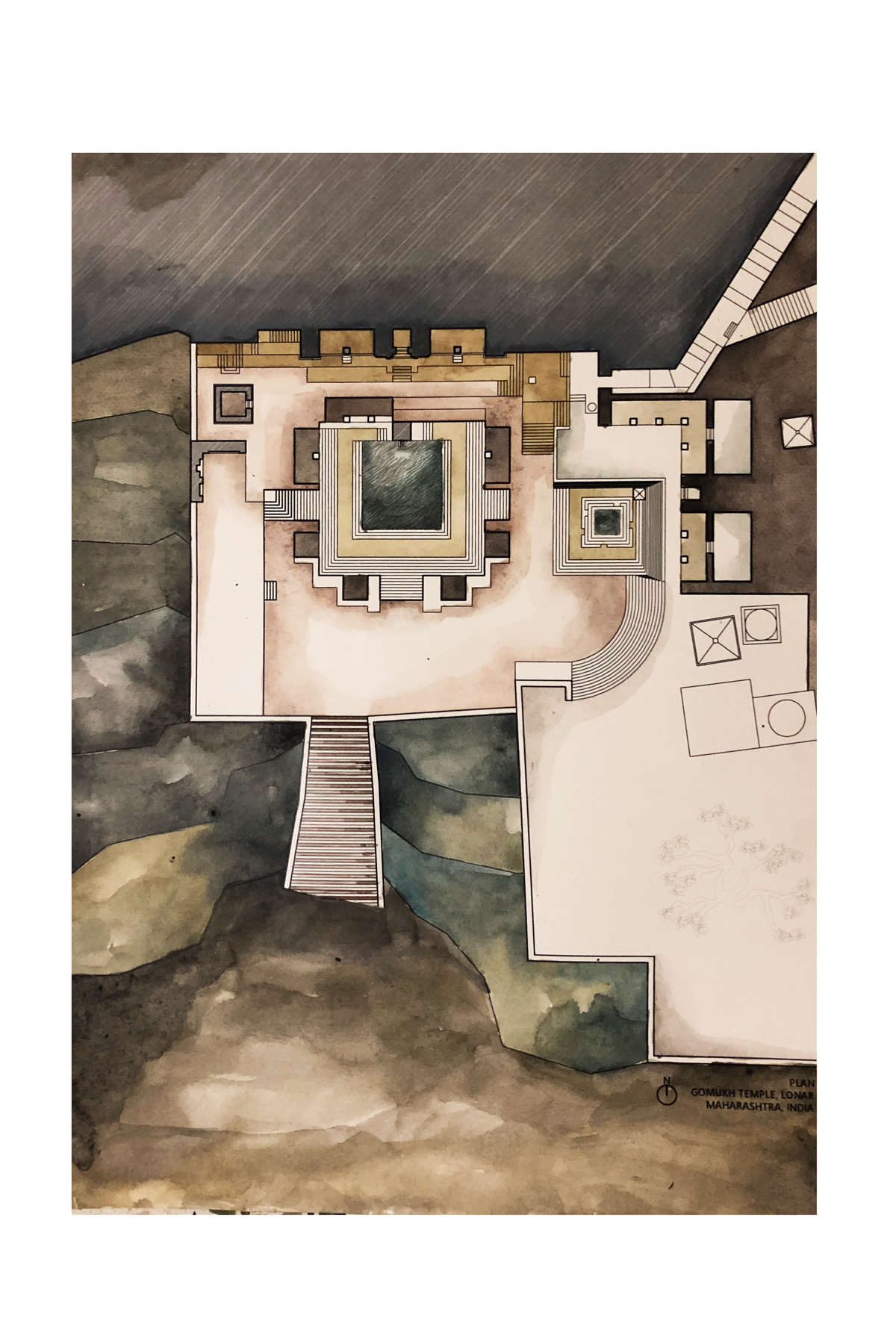 The Lonar Crater is the perfect example where the celebration of water and architecture becomes sacred and the entire building gets scaled with steps. Where one enters and goes into through and over out its like large puzzle box. The temple and tank movements within the entire setting is low key a “no building” given scale principally by flights of steps.