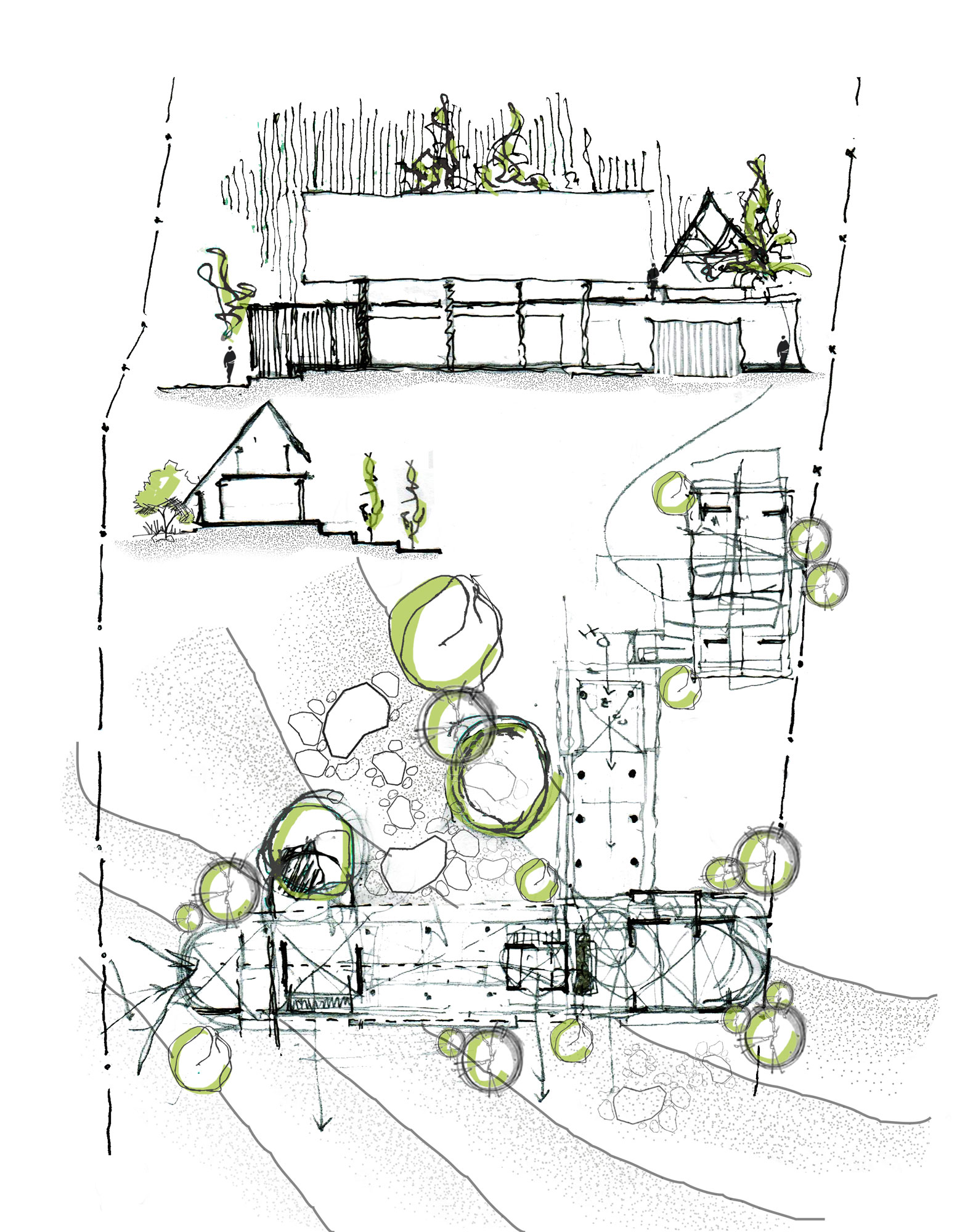 House by the Grove emerges from expansive farmlands dotted with silver oaks, teak trees, and a flourishing avocado plantation in the backyard, embodying a seamless harmony between people, nature, and design in a weekend retreat for a family of three. The dwelling thoughtfully positions itself within this lush landscape, cradling the verdant foliage of fruit-bearing trees thereby dictating its form creating linear foyer.