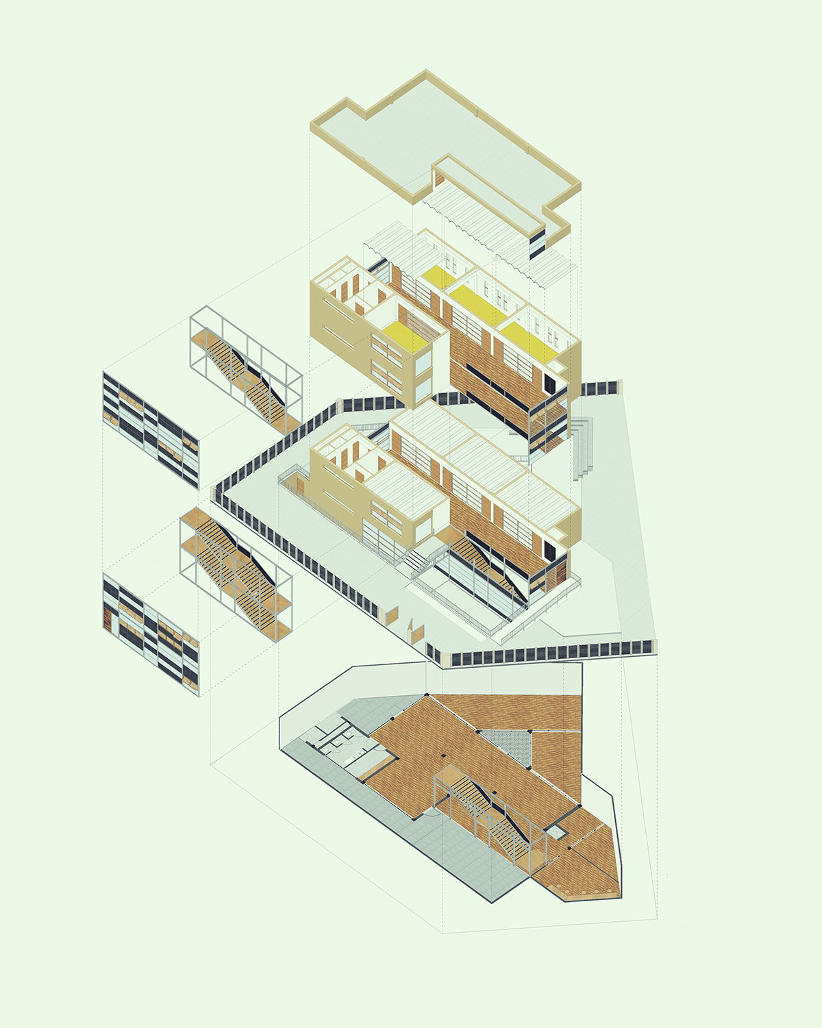 This green field project involved building the image of a corporate brand through the construction of a Montessori school. The building conveys both a sense of playfulness and legitimacy, while prioritising service-engineering design. Each square foot of the school is designed to communicate the brand image while also being child friendly. This project also marks another one of the Studio’s experiments with transitional spaces – here, the corridor becomes a communal space that binds rather than segregates the educational spaces. It marks the Studio’s ongoing interest in exploring the relationship between transitional and functional spaces.