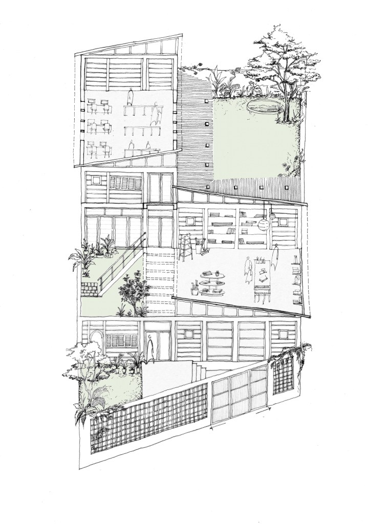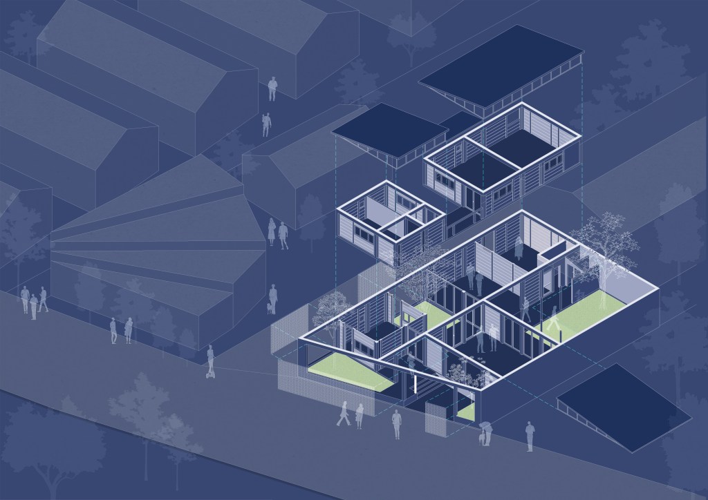 Drawing 01: Exploded isometric drawing focusing on the spatiality of the project.