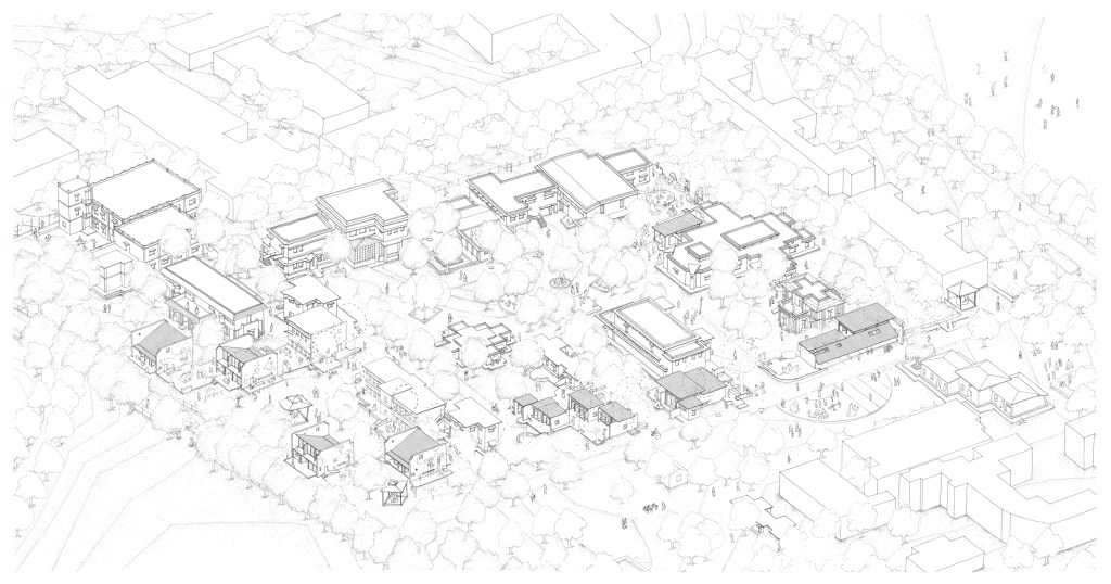 The drawing is an outcome of an academic exercise undertaken as a part of an undergraduate architectural dissertation (Eclectic Architecture of Santiniketan) at Indubhai Parekh School of Architecture, Rajkot. The submitted drawing is an attempt to illustrate the proposed design intervention in the harmony of the present existing campus environment which has been growing for more than a century in the paradigm of Rabindranath Tagore’s Santiniketan.
