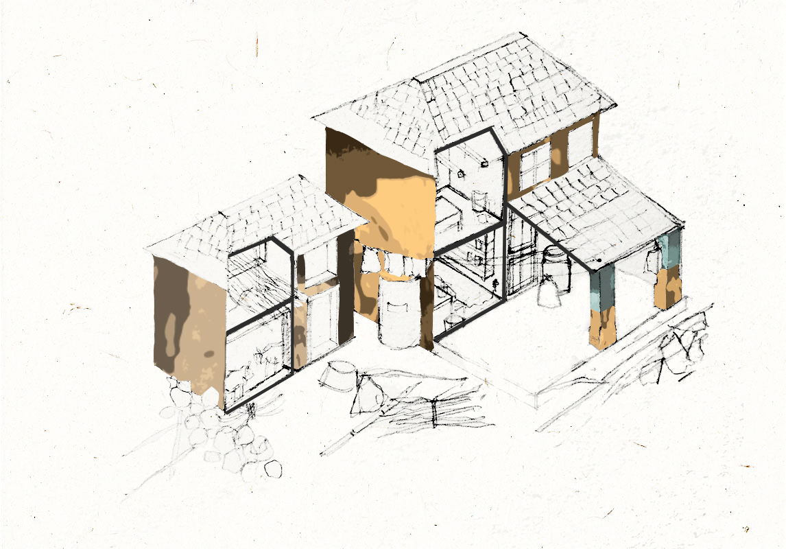 The above illustration depicts a section cut through a local home representing its simplicity and the daily activities around it. The visual is a result of an exploratory journey to Dharamshala in Himachal Pradesh as part of my final year thesis. I am extremely grateful to the various people who were instrumental in my vision of this project.