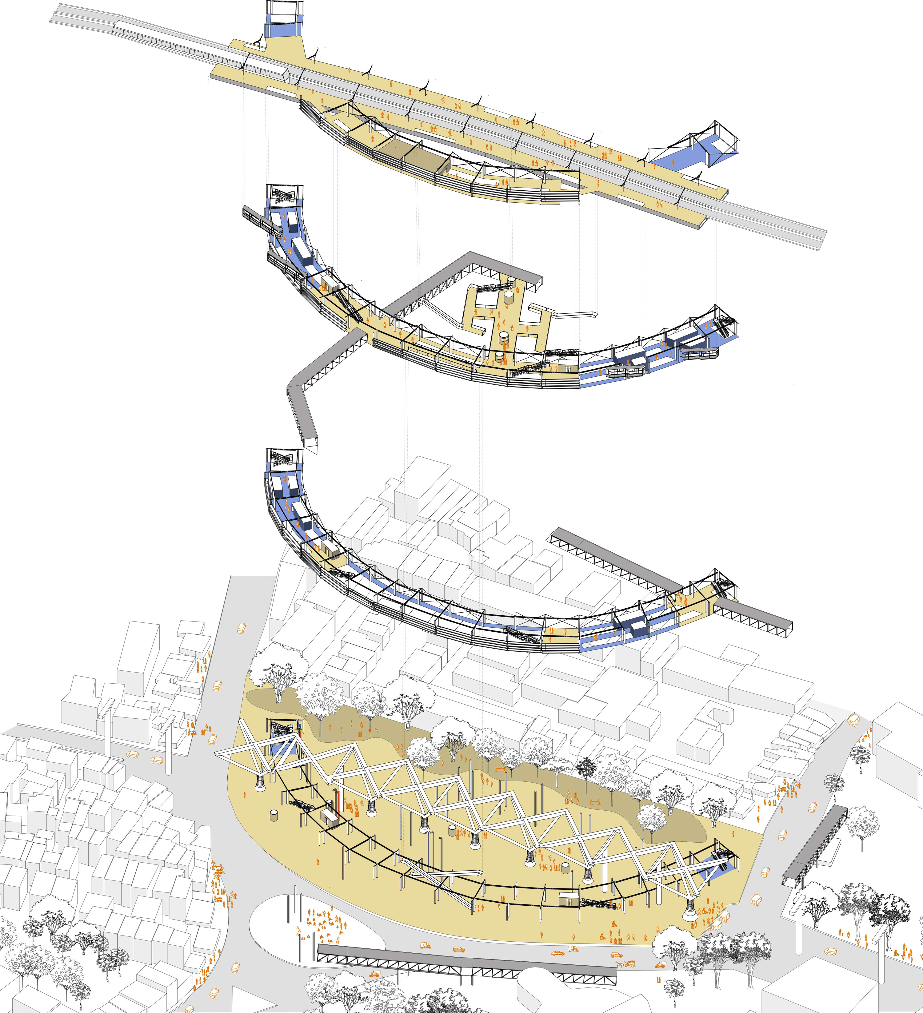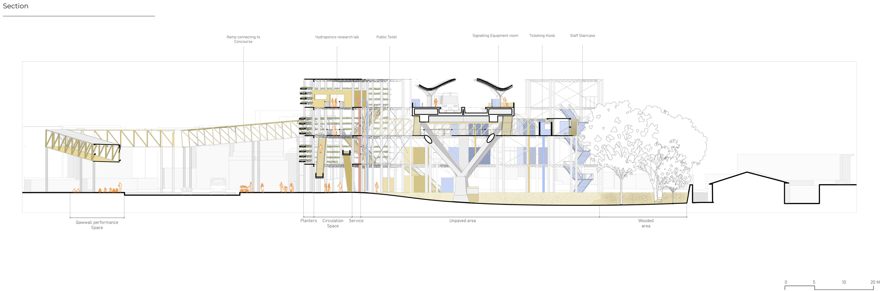 This project focused on exploring the integration of public Infrastructure with the broader urban context. In this case, the upcoming metro system of Surat was studied, and the station at Kadarshah ni Naal was chosen as the site. The design problem involved plugging the metro station in to fit the larger context and history of Surat city.