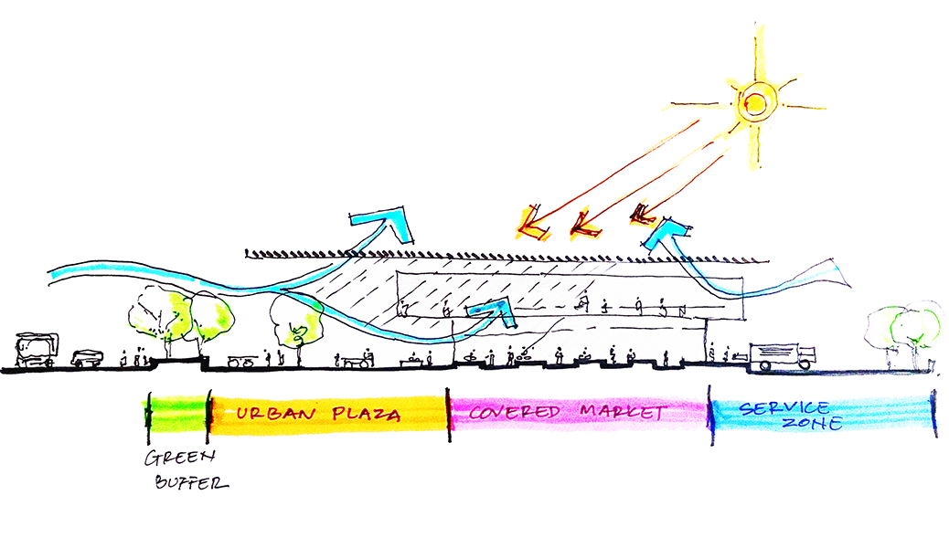Conceived as an urban public place that will predominantly function as a vegetable and flower market, it later during the day converts itself to informal market and eateries. This was a National Competition won in 2015 and went into construction only in mid-2018, and is now at its finishing stage. After four years, the project is yet to see its day considering it has witnessed, good and bad administration, issues with land acquisition, the quest to save a 100 year old tree and getting the best out of an L1 Contractor.