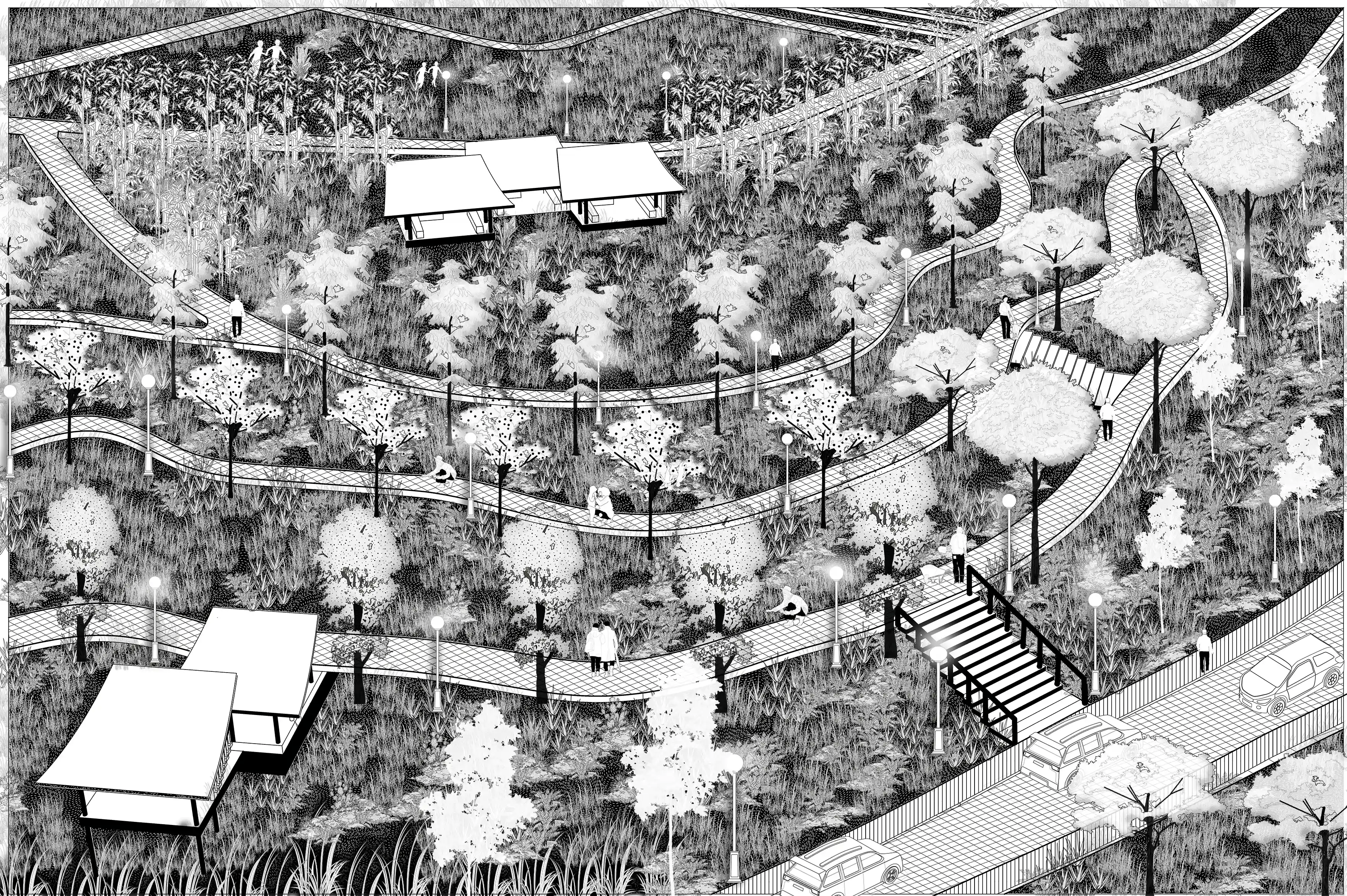 To address these challenges, vegetation is employed as a key strategy to foster orientation, discovery, and immersion, turning the site into an adventure for visitors. People coming to the site will have the opportunity to enjoy new and exciting ways to explore and interact with the landscape.